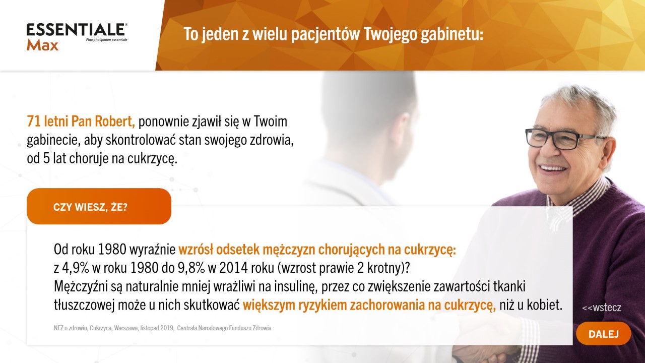 Mężczyzna z cukrzycą typu 2 i stłuszczeniem wątroby.